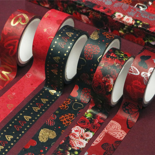 Set de Washi Tapes Saint-Valentin – Cœurs & Papillons Dorés | 9 Rouleaux
